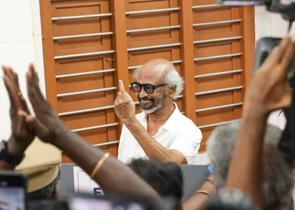 Rajinikanth, who arrived with his younger daughter, director Soundarya Rajinikanth, at the Stella Maris College for Women, proudly displayed his inked finger to the media after casting his vote.