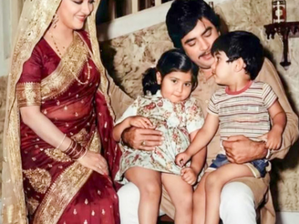 In the picture shared by Tusshar, Jeetendra is seen seated with his children, little Ekta Kapoor and Tusshar Kapoor, on his lap, while Hema Malini looks at them with warmth in her eyes.