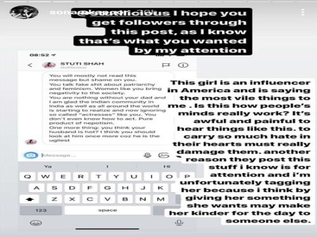Further commenting on Anand, the user wrote, "One more thing: you think your husband is hot? I think you should look at him once more cuz he is the ugliest."Responding to her hate, Sonam wrote, "I hope you get followers through this post, as I know that’s what you wanted by my attention. This girl is an influencer in America and is saying the most vile things to me. Is this how people's minds really work? It's awful and painful to hear things like this. To carry so much hate in their hearts must really damage them."She further wrote, "Another reason they post this stuff I know is for attention and I am unfortunately tagging her because I think by giving her something she wants may make her kinder for the day to someone else." Sonam is currently in London with her husband. The actress last month hosted a romantic birthday bash for her hubby. The duo are also known for their social media banter which often leaves netizens in splits. Sonam who has been away from the silver screen is currently reading scripts and is soon expected to sign her next film.