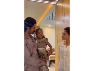Vijay is seen holding the child affectionately, while Rashmika serves her laddoos and plants a gentle kiss on her forehead. Vijay also served her rice.