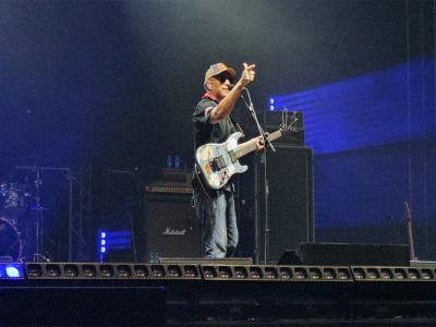 Whammy-ing, scratching and grinding out searing riffs, the Rock & Roll Hall of Fame inductee held the audience spellbound as he unleashed his unmistakable sound at his debut concert on Wednesday.