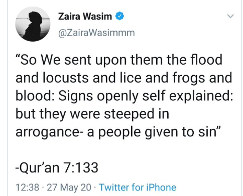 Soon after receiving backlash, Zaira deleted her tweet that read, “So We sent upon them the flood and locusts and lice and frogs and blood: Signs openly self explained: but they were steeped in arrogance- a people given to sin - Qur’an 7:133.” Meanwhile, she has also deleted her Twitter and Instagram account after the controversial post. The young actress was last seen in The Sky is Pink with Farhan Akhtar and Priyanka Chopra. Check out some of the reactions by netizens here...