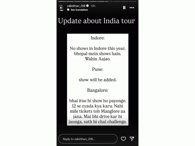 Zakir Khan's Instagram Story: