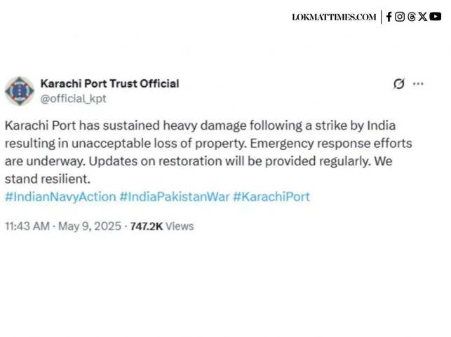 Amid viral videos and photos of the Indian Navy's INS Vikrant destroying Pakistan's Karachi Port on Thursday, May 8, during the conflict between India and Pakistan. A post X (formerly known as Twitter) post of the Karachi Port Trust handle confirmed that the port received significant damage following the strike of the Indian Navy. However, later it's said that its account was hacked by India.'
