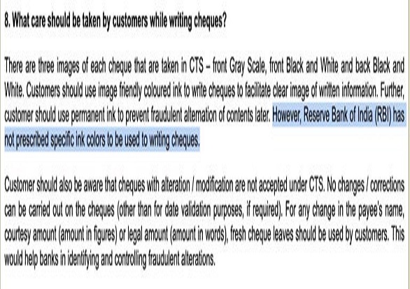 Fact Check: Does RBI Regulate Ink Color for Writing Cheques?