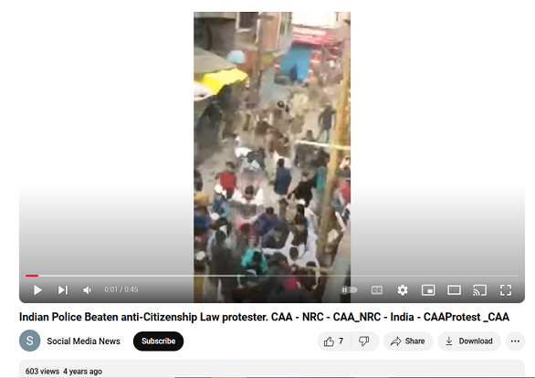 Fact-checking by Vishvas News reveals that the viral video is false and is actually related to protests against the Citizenship Amendment Act (CAA) and National Register of Citizens (NRC) in Gorakhpur during 2019-2020, not the recent incident in Sambhal. A detailed investigation led by Vishvas News found that the video had been uploaded on a YouTube channel named ‘Social Media News’ on December 31, 2019, under the title, “Indian Police Beat Anti-Citizenship Law Protester. CAA – NRC – CAA_NRC – India – CAAProtest_CAA.”