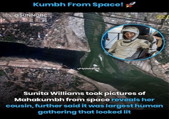 On March 18, 2025, NASA astronauts, including Sunita Williams, returned to Earth after a nine-month mission aboard the International Space Station (ISS). During this time, two photos were widely shared on social media, with claims that they depicted the 2025 Prayagraj Maha Kumbh Mela, allegedly captured by Sunita Williams from space. However, doubts about the authenticity of these photos soon emerged. Let’s examine these claims in detail.