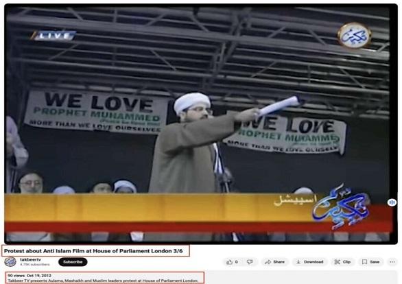 Further research led to the discovery of several videos uploaded on the YouTube channel 'takbeertv' on 19 October 2012, which depict a protest held outside the UK Parliament. These videos confirm that the footage in the viral clip belongs to the 2012 protest. The protest in question was in response to the film Innocence of Muslims, which was widely criticized by the Muslim community for depicting objectionable content about Prophet Muhammad. The images from the protest, also found on Alamy Stock Images, corroborate this timeline, confirming the protest took place on 6 October 2012.