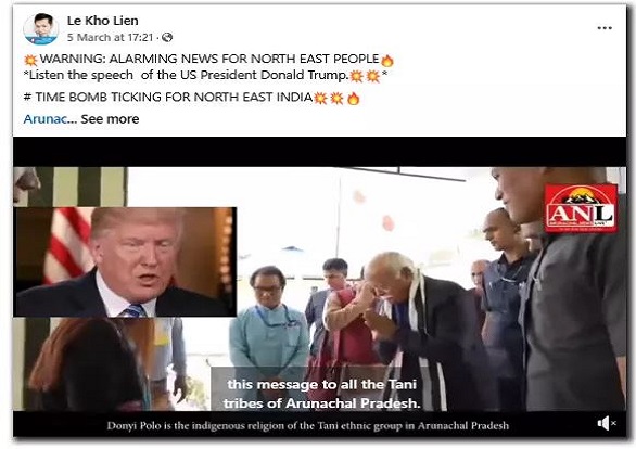 The viral video, lasting 3 minutes and 20 seconds, shows Trump allegedly claiming that certain individuals within the Donyi Polo community are selling their identity and faith to the RSS for political gain, exacerbating conflict among Christian Tani people in relation to the APFRA. He further urges the community to identify those who have accepted money from the RSS to divide the Tani people and calls on the ‘true followers’ of the Donyi Polo faith who have not received RSS funding to unite and expel these influences from the state, accusing them of exploiting religion to incite political violence among the Tanis.