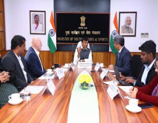 AIFF President Kalyan Chaubey discusses expansion of AIFF-FIFA Academies with Sports Minister