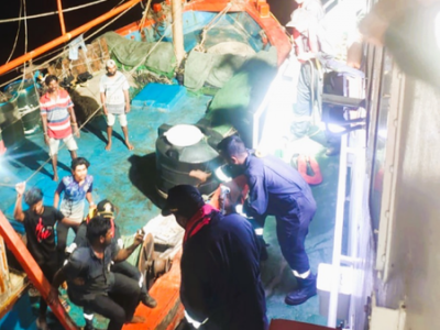In a similar operation last year, the Coast Guard carried out dual medical evacuation missions off the Gujarat coast on March 23, rescuing two fishermen with severe injuries from separate vessels around 100 km offshore near Porbandar and Pipavav.