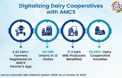 The integrated digital tools include the Automatic Milk Collection System (AMCS), which has benefitted over 17.3 lakh milk producers across 54 milk unions. This ensures transparent payments and efficient operations.