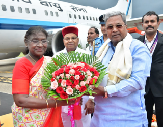 President Murmu arrives in Karnataka's Mysuru, CM extends warm welcome