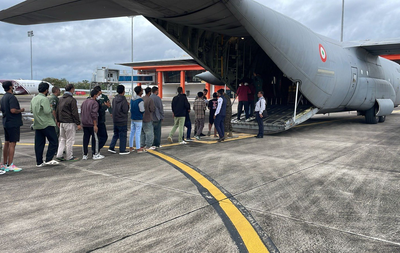 Bangkok, Nov 10 The Indian Embassy in Thailand said on Monday that 197 Indian nationals have been repatriated to India from Mae Sot by two special flights operated by the Indian Air Force (IAF). The Indian nationals deported on Monday were detained in Mae Sot after they had entered Thailand from Myanmar's Myawaddy, where they were allegedly working in the cyber scam-centres.