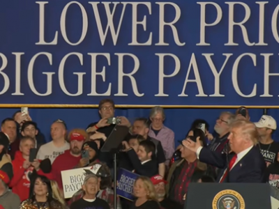 He pivoted on Tuesday to a domestic audience at a rally at a casino resort in Pennsylvania under the banner, 'Lower Prices; Bigger Paychecks', in scenes recalling his massive election campaign meetings.
