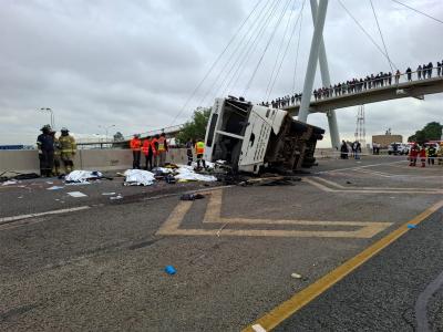 According to search and rescue authorities, the bus was moving at a fairly high speed when it approached a turn, lost control and struck the barrier before flipping onto its side.