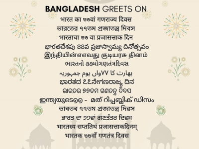 The Bangladesh High Commissioner to India, Riaz Hamidullah, while sharing an image bearing the message, "Bangladesh greets on India'a 77th Republic Day", (the greeting was extended in 14 languages) wrote, "#Bangladesh felicitates every woman-man-child in #India on".