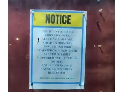 "Due to unavoidable circumstances, all consular and visa services from the Bangladesh High Commission in New Delhi are temporarily suspended until further notice. Any inconvenience caused is sincerely regretted," Bangladesh High Commission said in a notice.