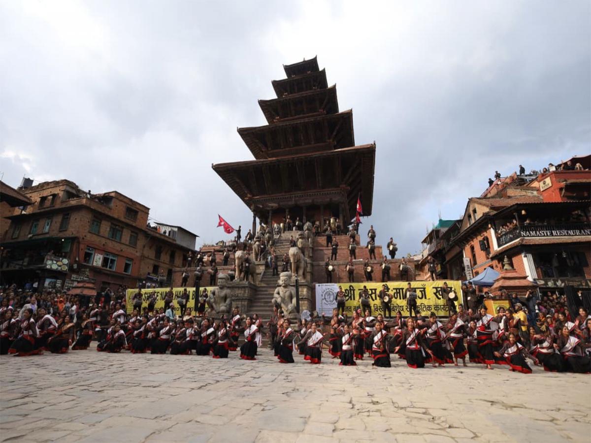 On the eve of the formal start of Biska Jatra, the nine-day-long festivity of the ancient city of Bhaktapur, dozens of denarians and vicenarians performed a synchronised musical performance.