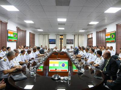 New Delhi [India], November 21 : A 40-member delegation from Brazil's Naval War College was hosted at the Naval Headquarters here in the national capital. The visit of the delegation saw discussions on enhancing the bilateral training cooperation in maritime domain.