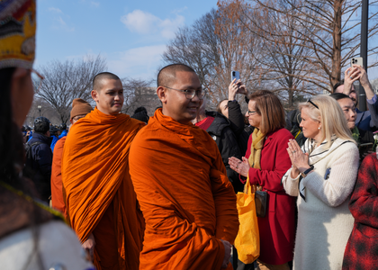 At the Washington National Cathedral, more than 100 Buddhist monks and nuns joined them for an interfaith gathering hosted in part by Washington Episcopal Bishop Mariann Budde.