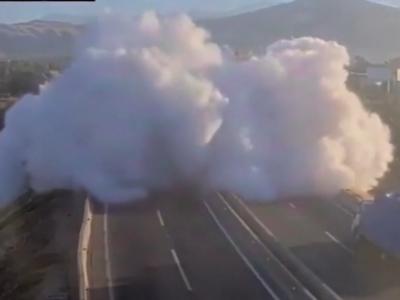 A video of the incident, which has gone viral, shows a truck overturned and slamming into a barricade,s which has caused leakage of gas that has spread within seconds on the road and later turned into a fireball.