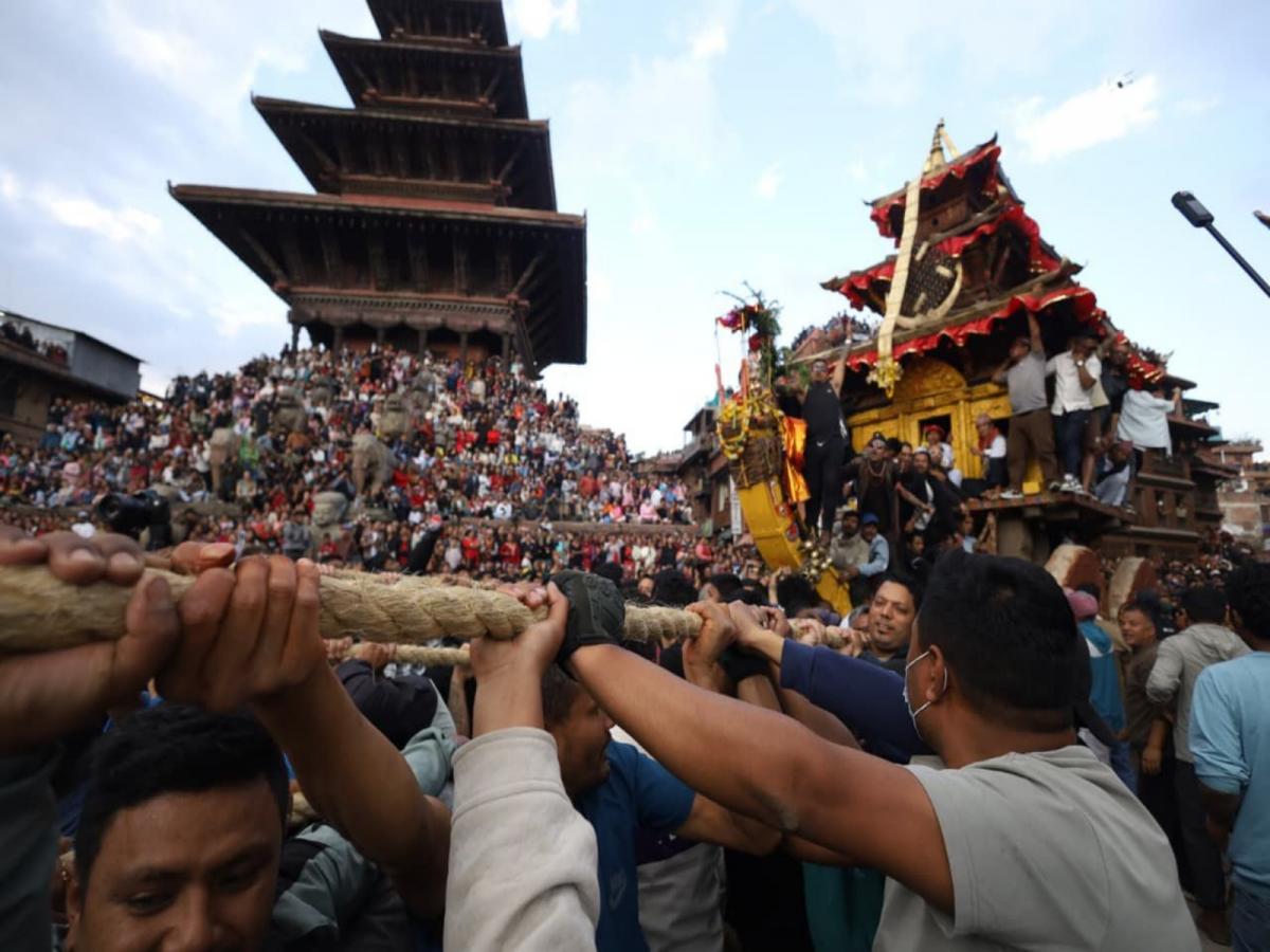 "The chariot is pulled for 8 nights and 9 days. On the first day it is pulled around and on is taken to the lower area of the (taumadhi) square. It is rested for the two days and on the new year day it is pulled to the upper area and again is rested for another two days. This year it will be celebrated till the 5th of Baisakh," Shivaram Bhoju, chairperson of the Taumadhi Club, said.