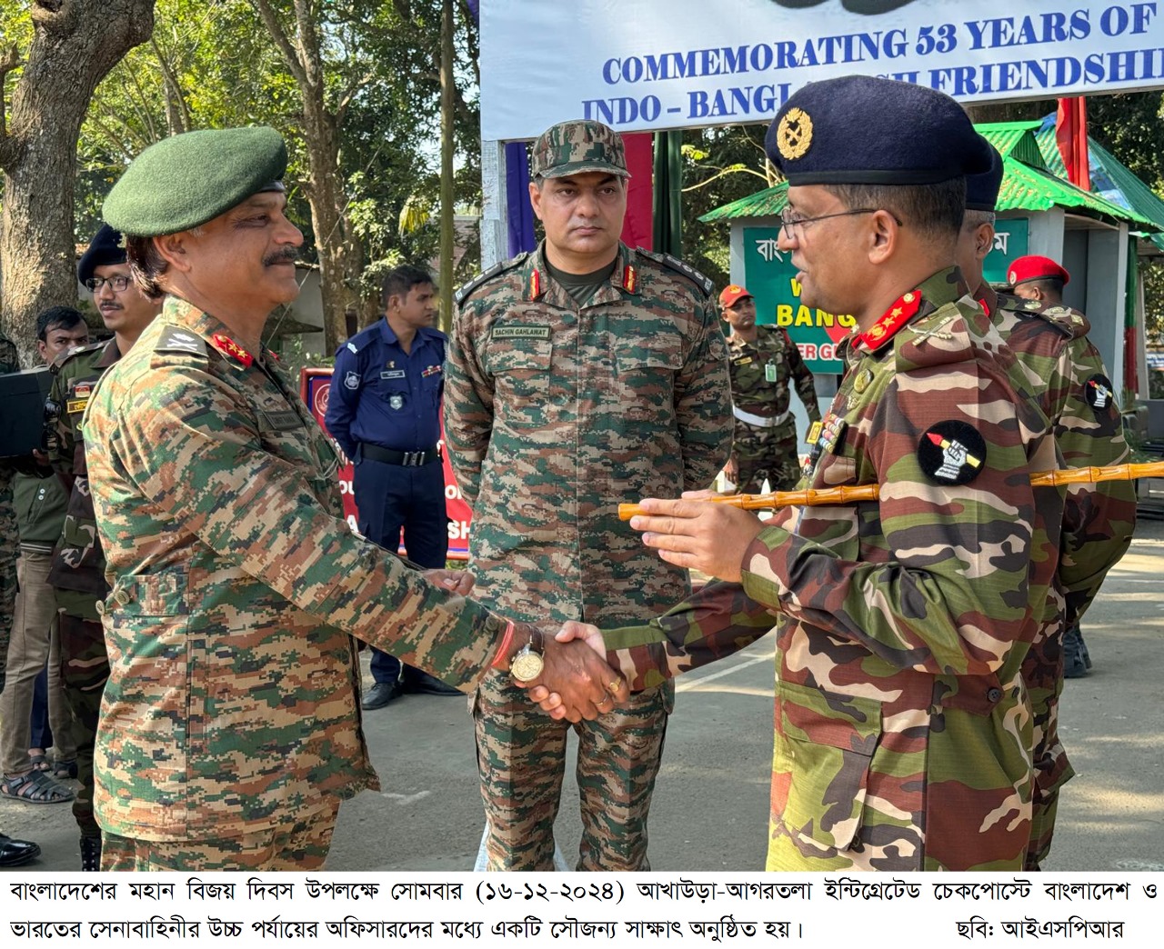"On behalf of Bangladesh Army, GOC 33 Infantry Division and Area Commander, Comilla Area Major General Abul Hasnat Mohammad Tariq, NDU, AFWC, PSC and Chief of Staff, 101 Area Major General Sumit Rana on behalf of Indian Army were present," the Inter-Services Public Relation Directorate (ISPR) of Bangladesh said in a statement.