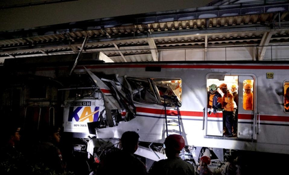 A commuter train on the Jakarta-Bekasi route was involved in a collision with a long-distance train operating on the Jakarta-Surabaya route at around 8:50 p.m. local time on Monday.