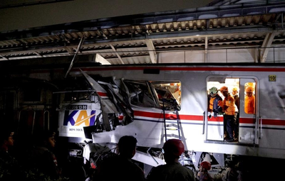 A commuter train on the Jakarta-Bekasi route was involved in a collision with a long-distance train operating on the Jakarta-Surabaya route at around 8:50 p.m. local time on Monday.
