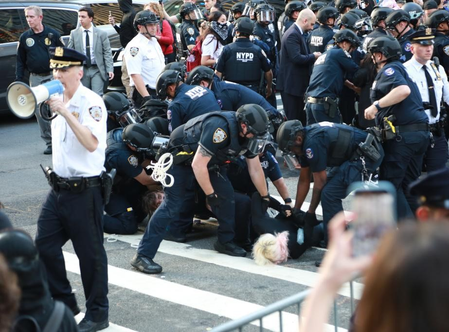 In Pasadena, a neighboring city of Los Angeles, more than 500 protesters gathered at a corner near city hall, chanting "No ICE, No KKK, No Fascist USA" to the accompaniment of car horns and cheers.