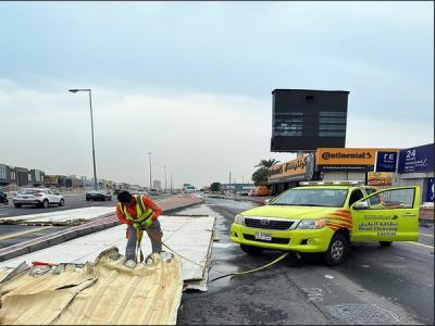 There were 69 reports of fallen trees in neighbourhoods or on internal roads, and 16 reports of fallen trees on Dubai main roadways owing to strong wind speed. In addition, the Municipality received 18 requests for rainwater pool draining.