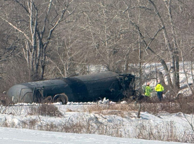 State and local hazardous materials teams are monitoring for leaks closely, the state's Department of Energy and Environmental Protection said. They have placed hazmat booms in the water as a precaution.