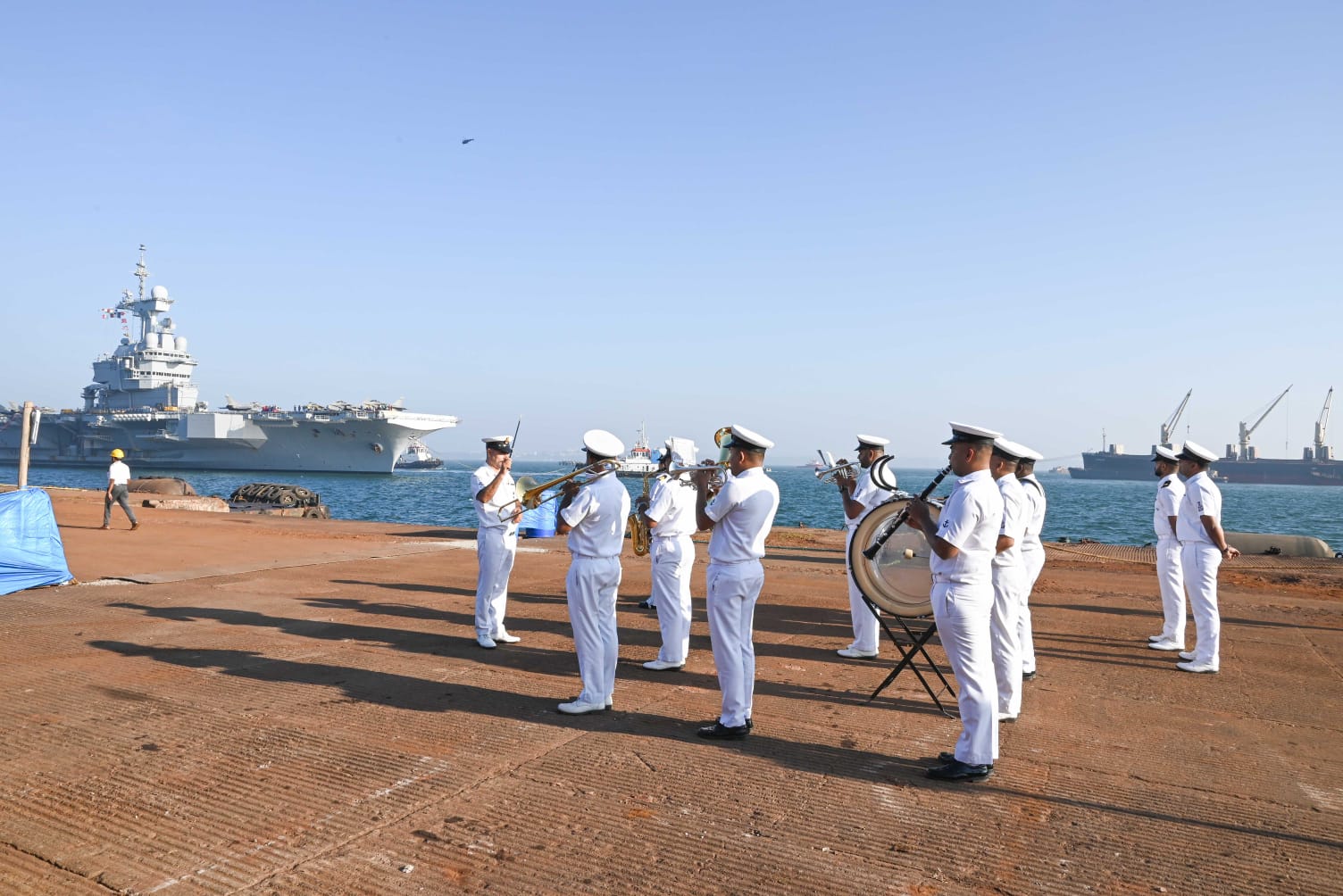 French Navy aircraft carrier Charles De Gaulle arrives in Goa