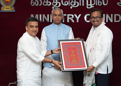 Colombo, Feb 5 Gujarat Governor Acharya Devvrat and Deputy Chief Minister Harsh Sanghavi met Sri Lanka's Minister of Industry and Entrepreneurship Development, Sunil Handunnetti in Colombo on Thursday, discussing collaboration through connecting industries of Gujarat and Sri Lanka for exploring opportunities in investment and industrial development in the island nation.