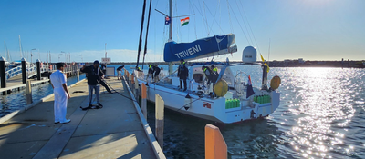 Triveni, the world's first Tri Service All Women Circumnavigation Expedition, was warmly welcomed at the Fremantle Sailing Club by the Indian Consul General in Perth, Kajari Biswas and the Australian Defence Advisor.