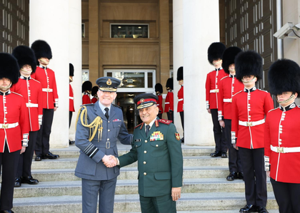 London, April 20 Chief of Defence Staff (CDS) General Anil Chauhan was accorded a Ceremonial Step Line and received by his UK counterpart Air Chief Marshal Sir Richard Knighton, in London on Monday.