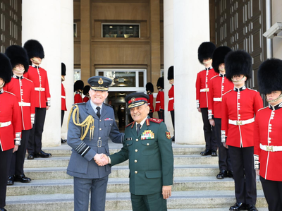 London, April 20 Chief of Defence Staff (CDS) General Anil Chauhan was accorded a Ceremonial Step Line and received by his UK counterpart Air Chief Marshal Sir Richard Knighton, in London on Monday.