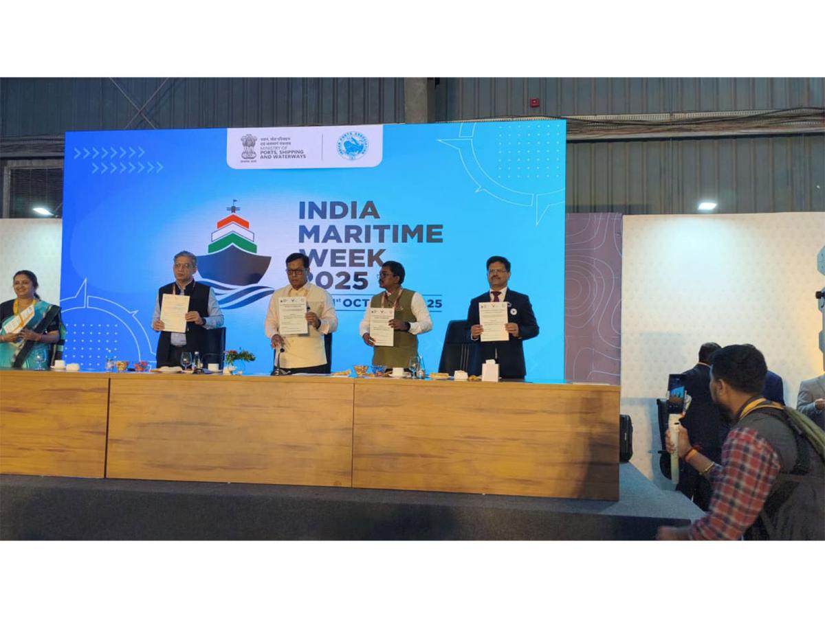 Mumbai (Maharashtra) [India], October 30 : With a strong push from the Government of India, ports across the country are embracing renewable energy, green hydrogen, and decarbonisation initiatives to align with the nation's vision of becoming a global leader in clean maritime operations. In this context, several MoUs were exchanged on the fourth day of India Maritime Week 2025 worth over one lakh crore rupees.