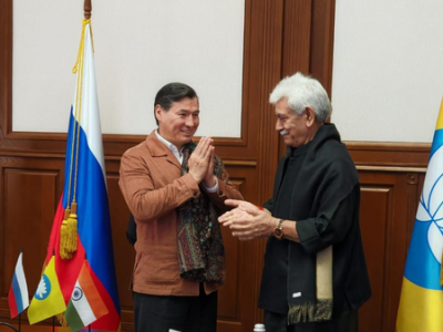 Moscow, Oct 18 Jammu and Kashmir (J&K) Lt Governor Manoj Sinha on Saturday held a meeting with Batu Sergeyevich Khasikov, Head of the Republic of Kalmykia in Russia, during his visit to the country to bring back the holy relics of Lord Buddha after a weeklong exposition.