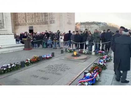 Paris [France], February 16 : Members of the Indian diaspora gathered at the Arc de Triomphe on Friday evening for a solemn remembrance ceremony marking the anniversary of the 2019 Pulwama attack.