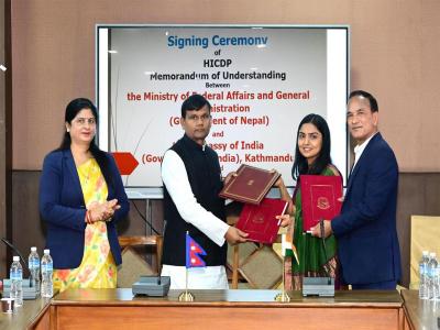 The Indian Embassy signed the MoU with the Ministry of Federal Affairs and General Administration, Government of Nepal, and Project Implementing Agencies to implement grant assistance from the Government of India in sectors such as Education, Health and Agriculture with a total estimated cost of NRs. 473 million.