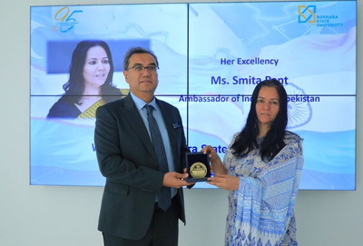 Tashkent, Oct 14 India's Ambassador to Uzbekistan, Smita Pant visited the Bukhara State University and discussed prospects for scientific and educational cooperation with the Rector Obidjon Khamidov. Pant also delivered remarks at a Seminar on ‘Intelligent Learning Platforms and Automated Systems’ at the University.