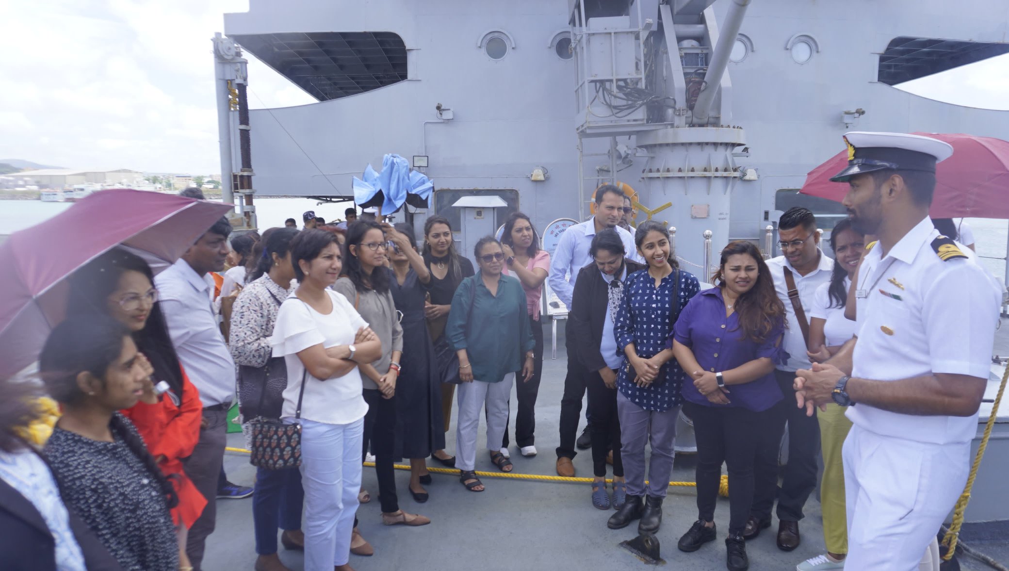 Upon its arrival, the ship was welcomed by Anurag Srivastava, the High Commissioner of India to Mauritius, Captain C G Binoop, Commandant of the Mauritius National Coastguard, and other military and civil dignitaries.