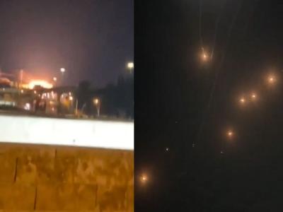 An Israeli who captured the moment from a terrace of a building shouts in panic while recording as the missile can be seen hitting the ground, said to be in West Jerusalem, with a huge blast, sirens can also be heard.