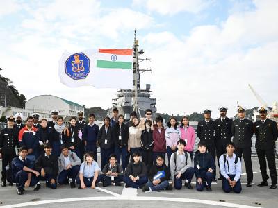 Yokosuka [Japan], October 29 : Japanese school children paid a visit to the Indian Navy's indigenous stealth frigate INS Sahyadri during its port call at Yokosuka and learnt about India's rich maritime heritage.