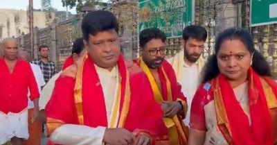 Tirupati, Oct 19 Ahead of her Telangana Jagruthi Padayatra, former BRS MLC K. Kavitha on Sunday offered prayers at Tirumala temple here.