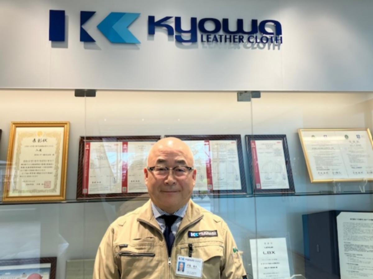 Ryuta Kawashima is the representative person of global business in Kyowa Leather Cloth. "Established in 1935 we provide artificial leather products for daily life goods and car. Currently 87 % of sales amount is from car equipment products. Of course, in Japan top runner. Strong points are appropriate mixture of chemical products, luxury designing and processing. It is effective to protect mold, germ, smell and so on."
