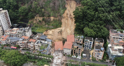 A total of 14 people were trapped in the landslide that occurred at about 8.30 a.m. in Dayuan village in the city's Baiyun District, with multiple houses damaged, according to the district's emergency management bureau.