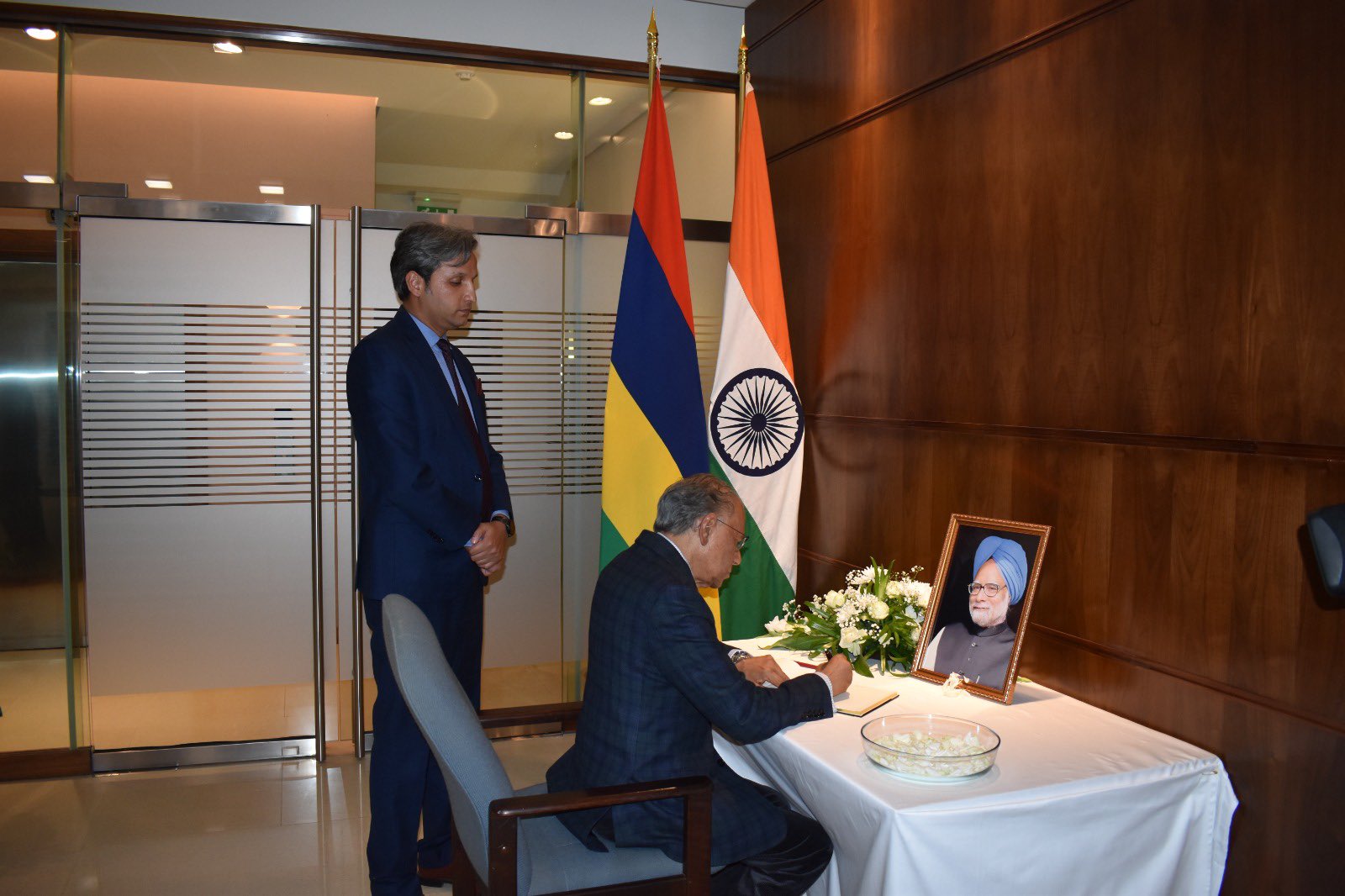 On Friday, Mauritius Prime Minister Navin Ramgoolam visited India's High Commission in Port Louis and signed the Condolence Book opened in memory of Manmohan Singh.